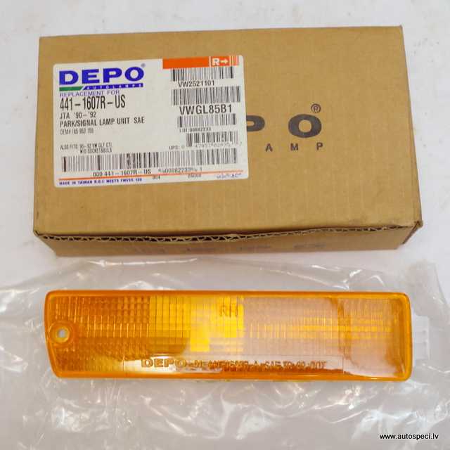 Pagrieziena lukturis dzeltens (labās puses) VW Golf II 89-; Depo (441-1607R-US) OPTPG-289-R. Cena 3.50 Eur / 2.46 Ls