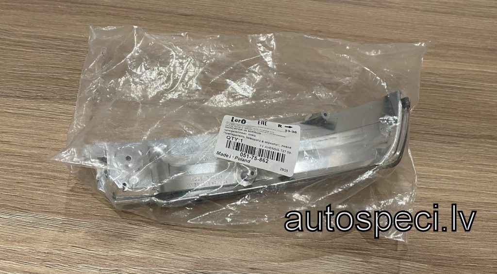 Pagrieziena signāla lukturis, labās puses, montējams ārējā spogulī. Der Toyota Avensis T27 2008 – 2015. Loro 051-75-862.