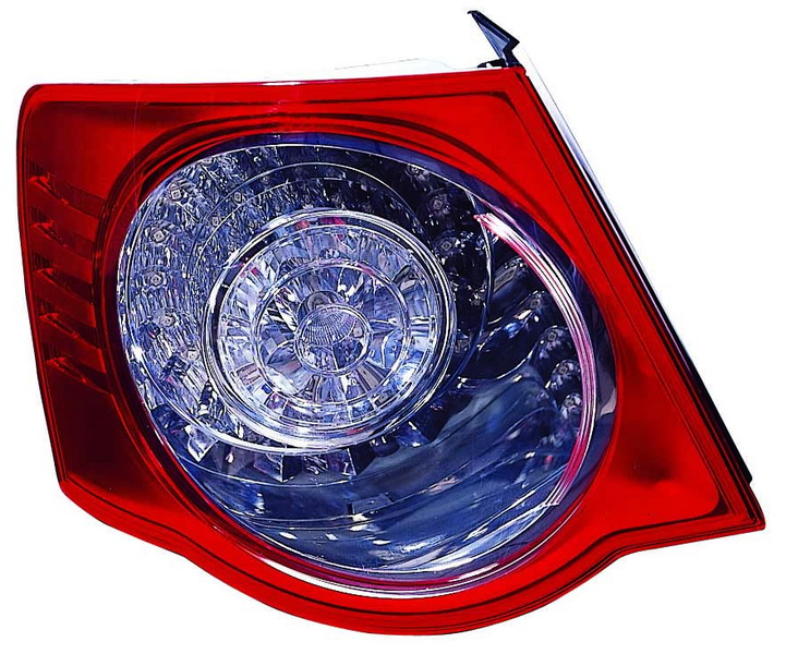Aizmugurējais lukturis Kreisās puses (ārējā daļa, LED, pagrieziena rādītāja krāsa balts, stikla krāsa sarkans) paredzēts VW JETTA III sedans 08.05-10.10