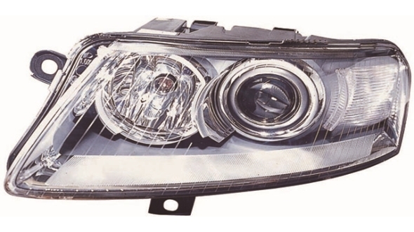 Reflektors Kreisās puses (D2S/P21W, elektrisks, ar motoru, iekšējā krāsa: hromēts/melns) paredzēts AUDI A6 C6 05.04-08.11